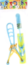 Plastik slynge med affyrbart fly. Flyet har et lille lys med AG13-batterier, som er inkluderet i pakken. Pakket i pose. Pakkestørrelse ca. 9x21x2 cm. Alder 3+.