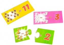 Dette sjove puslesæt med dyr hjælper børn med at tilegne sig grundlæggende addition og subtraktion ved hjælp af illustrative billeder og tal. Børn forbinder opgaver med resultater, styrker logisk tænkning, opmærksomhed og finmotorik – alt sammen naturligt og gennem leg.