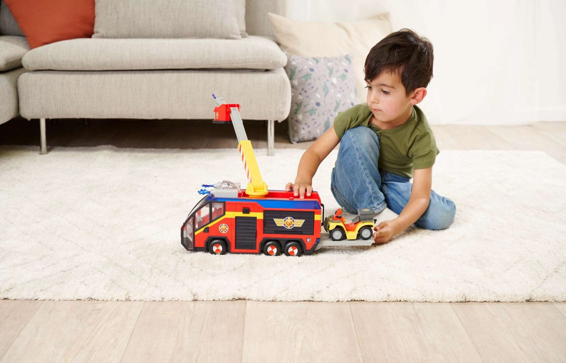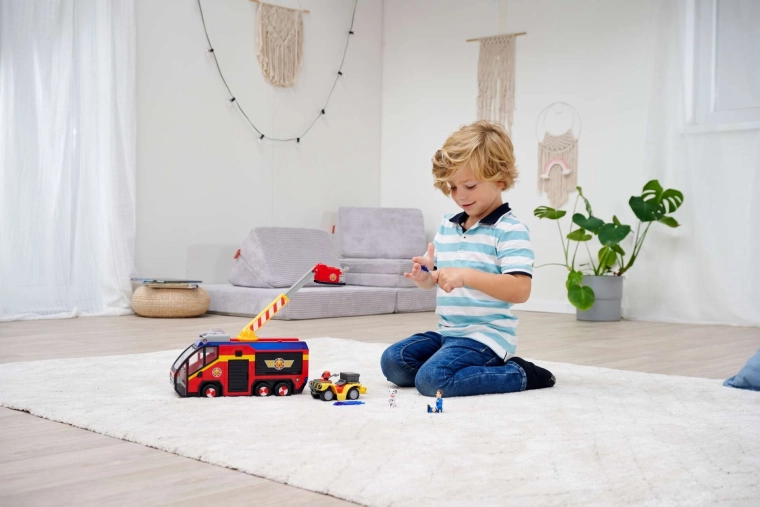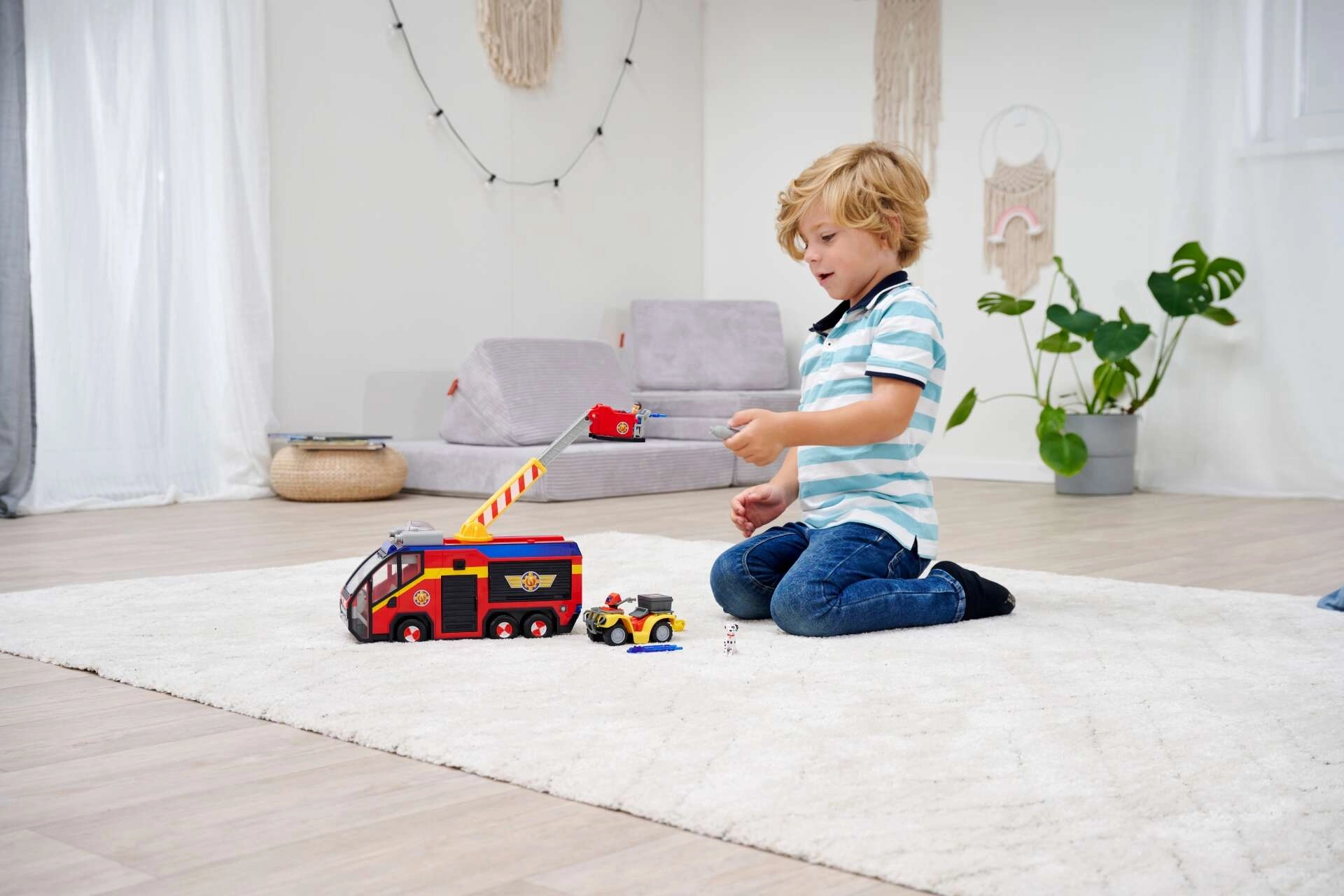 - OMFATTENDE UDSTYR: Der er en platform til ATV’en og et åbent opbevaringsrum til brandudstyr, som er forbundet med Jupiter, så du perfekt kan genopføre de kendte redningsmissioner fra skærmen med den modige helt Brandmand Sam.