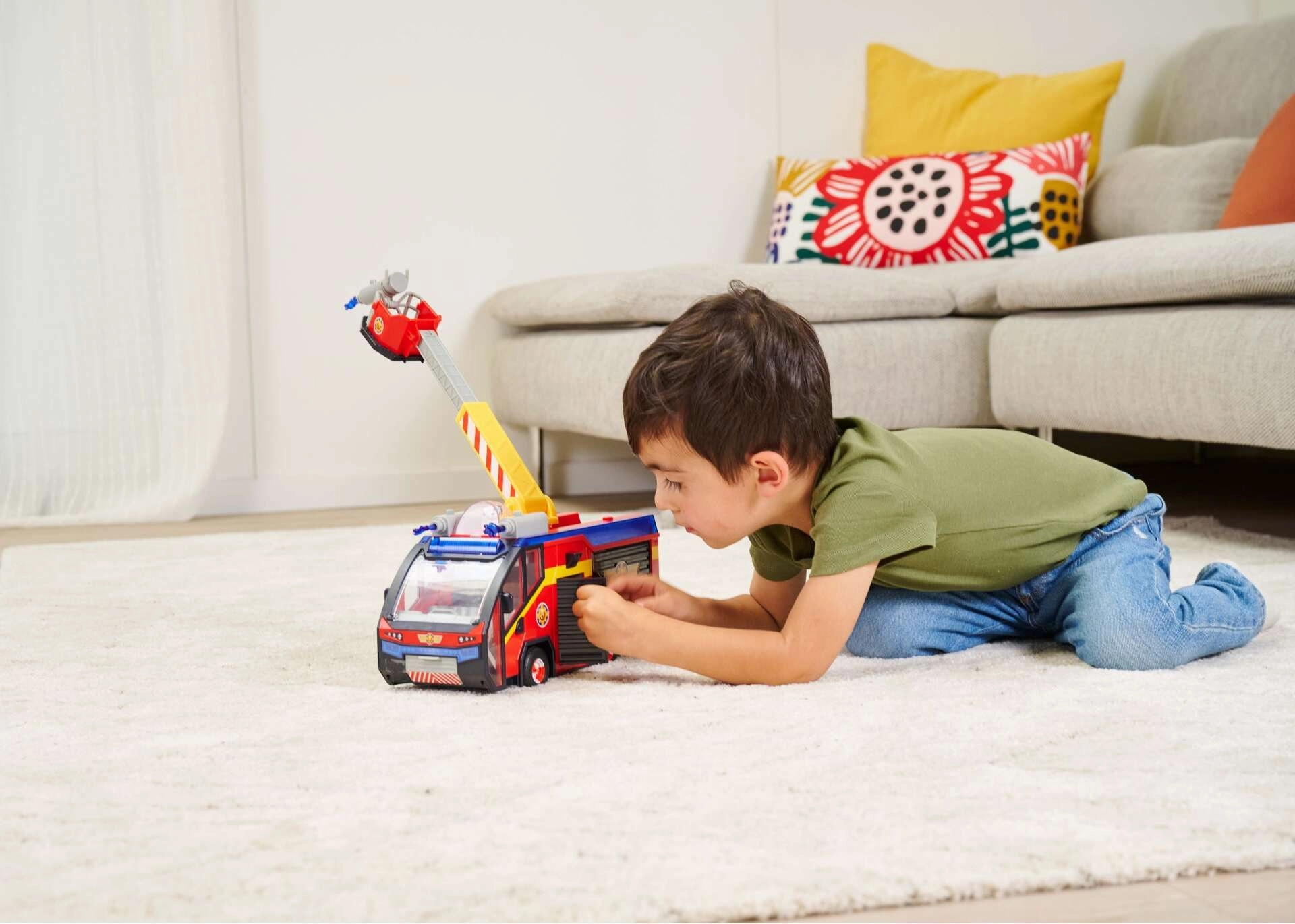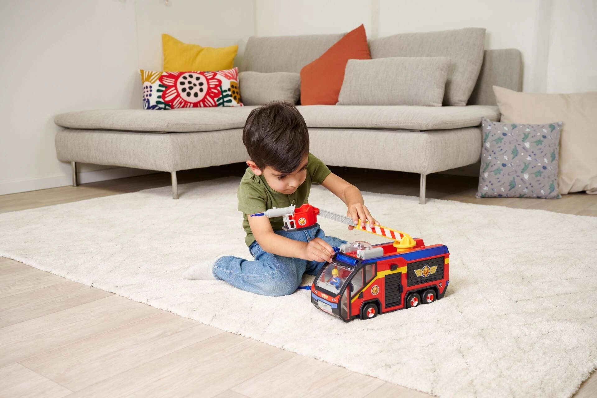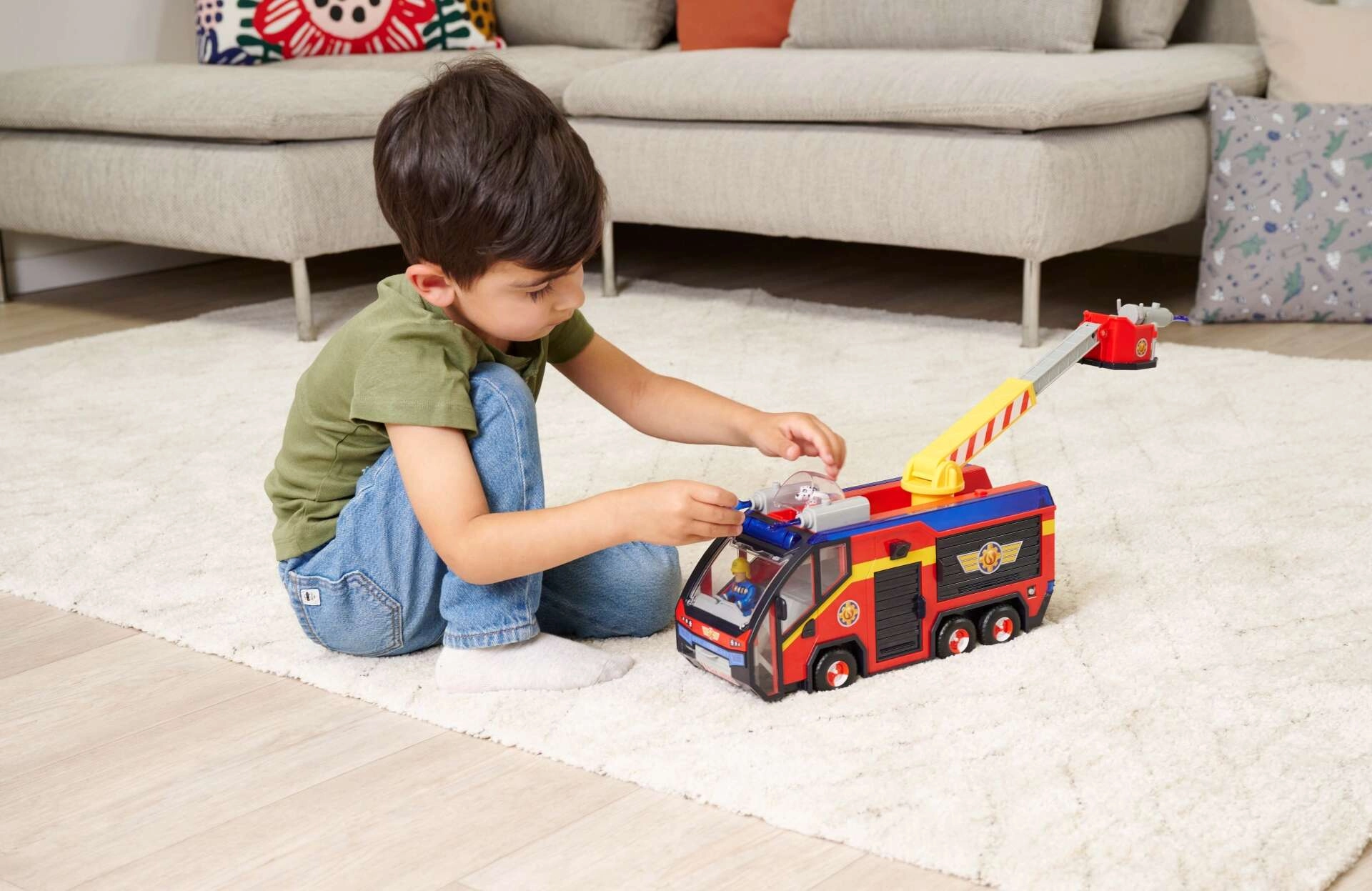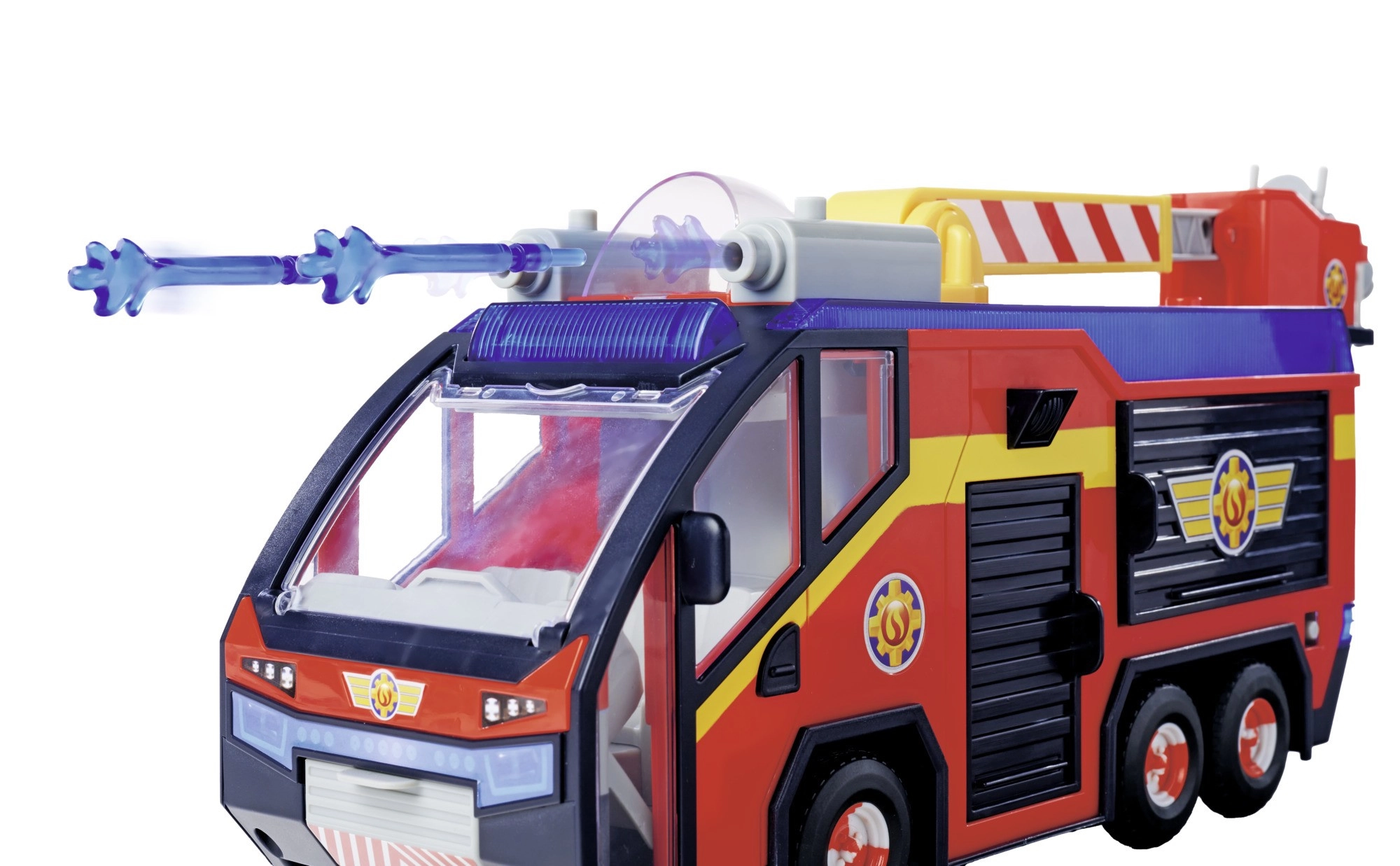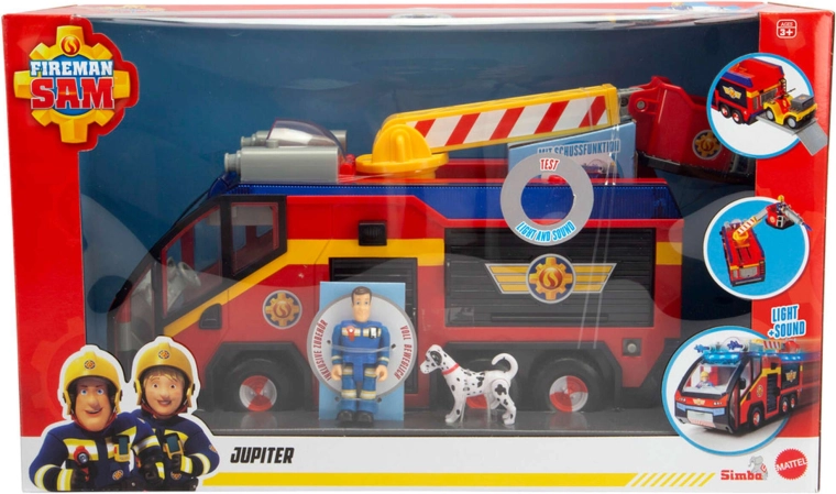 - LICENSERET LEGETØJ: Det mest berømte køretøj fra Brandmand Sam, Jupiter, i en ny version, der trofast afspejler køretøjet fra sæson 14 af serien. Jupiter har en drejelig brandstige, der kan foldes ud og drejes, samt plast-vandpile.