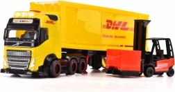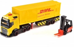 Denne detaljerede model af en VOLVO-lastbil i DHL-farver giver børn masser af muligheder for kreativ leg. Med den medfølgende gaffeltruck og kasser kan lastning, transport og losning nemt iscenesættes – præcis som i ægte logistik.