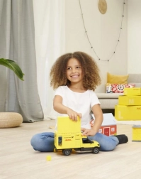 Dette detaljerede sæt tager børn med ind i pakkedistributionens verden. Den realistiske VOLVO-lastbil i DHL-farver med åbnbare elementer, lys og lyde gør hver leg autentisk. Sættet indeholder en kurérfigur, cykel med boks, sækkevogn, pakker og en parcelboks med solpanel til komplette leveringsscenarier.