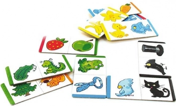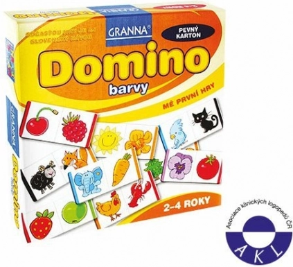 Det sjove billed-domino fra mærket GRANNAs hjælper børn fra 2 år med at lære farver og dyrenes navne. De enkelte brikker af kraftig karton passer præcist sammen, og spillet udvikler logisk tænkning, finmotorik og iagttagelsesevne. Der medfølger vejledning til 1 eller flere spillere samt anbefaling fra Foreningen af kliniske logopæder i Tjekkiet.