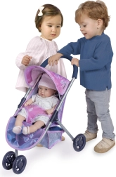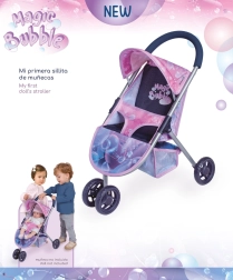 Oplev spansk design i børnestørrelse. Denne trehjulede klapvogn til dukker fra kollektionen MAGIC BUBBLE byder på glidende farveovergange fra rosa til kongeblå og ikoniske bobler, som vil glæde enhver lille omsorgsperson. Takket være det lave håndtag og vægten på 1,5 kg er vognen let at køre selv for mindre børn.
