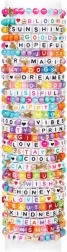 Sættet inkluderer bogstaver, runde perler og stjerneformer, alle i en række livlige farver til personliggjorte smykker.