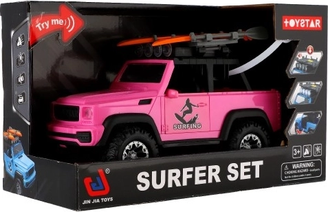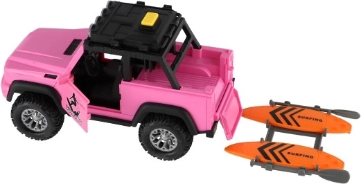 Nyd timevis af sjov med denne rosa terrængående bil udstyret med lys- og lydeffekter. Sættet indeholder også to surfbrætter og pagajer, hvilket gør den til det ideelle legetøj for små strandeventyrere.