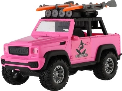 Denne rosa terrængående bil er designet til små opdagelsesrejsende, der elsker actionfyldt leg og strandeventyr. Legetøjet er udstyret med: