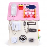 Oplev det rigt udstyrede aktivitetsboard-hus, som forener leg og læring i ét. Takket være de mange mekaniske elementer – låse, spænder, snørebånd, hjul og kontakter – forfiner børn deres finmotorik og logiske tænkning, mens de udvikler kreativitet og nysgerrighed.