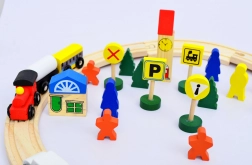 Denne klassiske træ togbane udvikler kreativitet, finmotorik og fantasi. Delene kan nemt kombineres og ombygges, så børn hele tiden kan opdage nye ruter og historier. Takket være magnetisk sammenkobling af vognene er toget let og sikkert at håndtere.