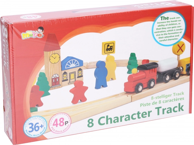 Opdag den sjove træ togbane i et komplet sæt med 48 stk., der vil glæde både små lokomotivførere og forældre. Sættet indeholder træskinner, tog med magnetiske vogne, figurer, bil, bygning og færdselsskilte – alt til at skabe din egen verden på skinnerne.