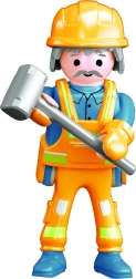 Byggearbejder Figur til et konstruktionssæt med en størrelse på 7 cm er ideel til alle små bygherrer. Pakken indeholder forskellige varianter og tilbehør som værktøj og en samlevejledning.