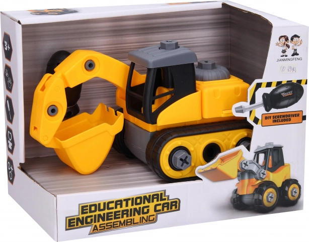Skruetrækker gravemaskine til små bygningsfolk, ideel til udvikling af motoriske færdigheder. Hav det sjovt med at samle og skille ad!