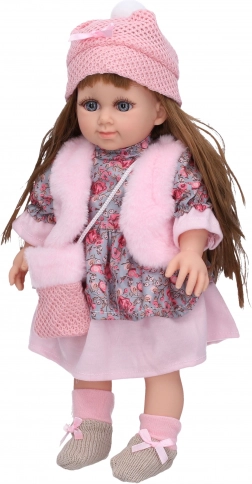 Dukke med håndtaske og blød krop, tilgængelig i størrelse 38 cm. Inkluderer 3x AG13-batterier.
