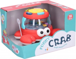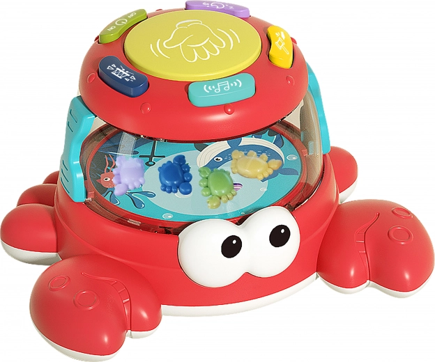 Den farverige tromme formet som en krabbe er det perfekte legetøj til mindre børn, der udforsker musikalske og rytmiske færdigheder. Den er designet til at tiltrække med sine farver og interaktive funktioner:
