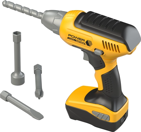 Boresæt. Mål 17,5x6x21,5 cm. Lyseffekter. 3x AAA-batterier medfølger ikke. ON/OFF-knap på boremaskinen. Indeholder 1 bor, 2 skruetrækkere, 1 nøgle.