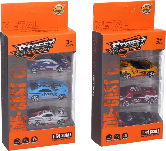 Oplev sjov med et sæt på tre metalbiler, ideelle til børneløb og samlinger. De fritløbende hjul sikrer jævn bevægelse på de fleste overflader, og metalchassiset giver legetøjet holdbarhed og længere levetid.