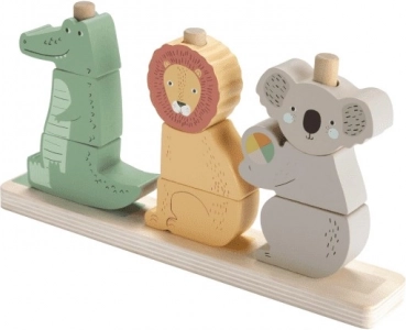 Opdag et sjovt træsæt til de mindste, som kombinerer sortering, stabling og kreativ leg. Børn kan bygge en krokodille, en løve, en koala eller skabe deres eget dyr. Legen udvikler finmotorik, øje-hånd-koordination og problemløsning. Fremstillet af FSC-certificeret træ og pakket uden plastik – et skånsomt valg for kloge forældre.