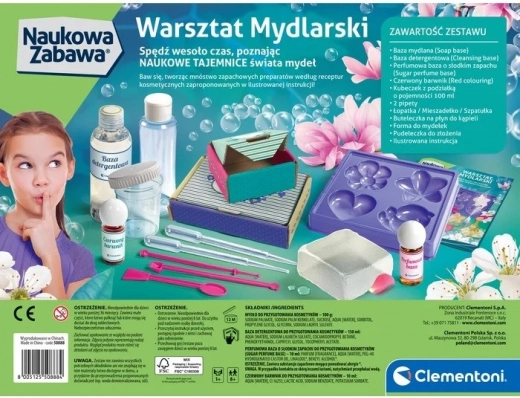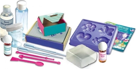 Aromatisk videnskabeligt sæt til at lave fantastiske, håndlavede sæber. Indeholder alle naturlige ingredienser, der er nødvendige for at skabe sjove og duftende kreationer.