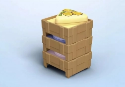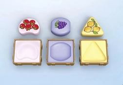 Kasser med farvede indsatser gør det muligt at sortere frugt og grøntsager efter farver og former, hvilket understøtter visuel og kognitiv udvikling.