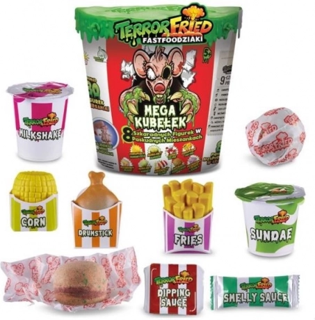 Dyk ned i fastfood-gysets verden med Terror Fried-figursættet. Denne mega spand byder på 8 afskyeligt sjove figurer og blandinger, som du kan klemme, skumme og boble for maksimal underholdning. Der venter dig masser af lag at opdage og en ulækkert fantastisk legeoplevelse for fans af bizarre samleserier.