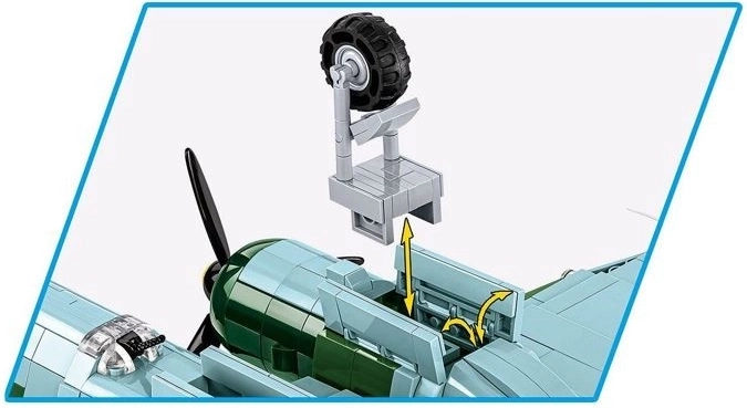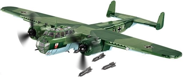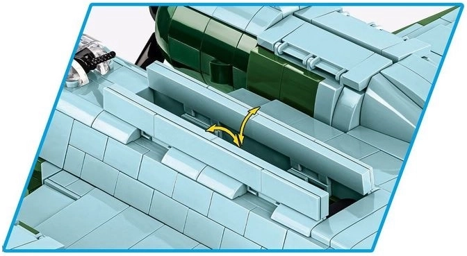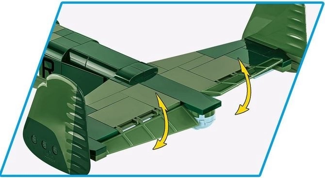 Roterende propeller, bevægelige aileroner og åbnelige bombeluger med aftagelige bomber og hjul øger både autenticitet og legeværdi.