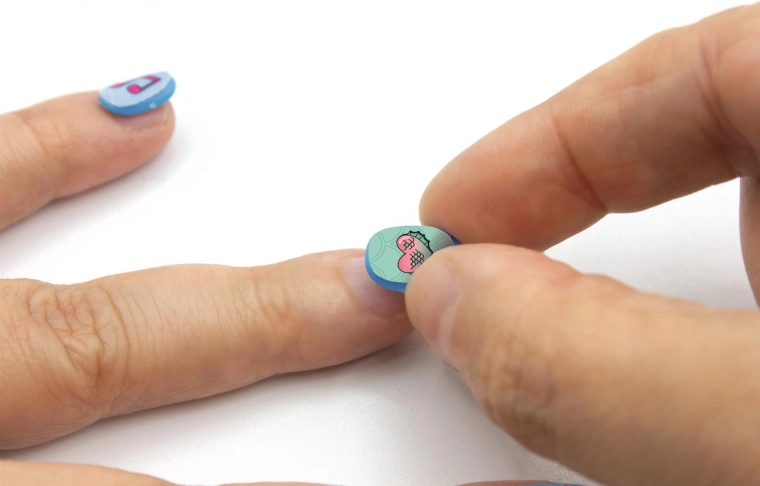 Selvklæbende dekorationer med populære heltinder giver hver negl en markant stil og et sjovt look.