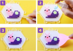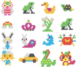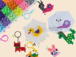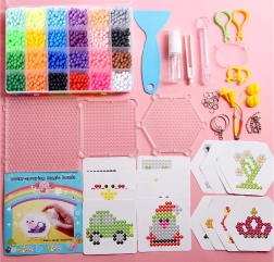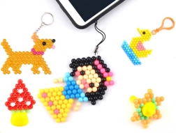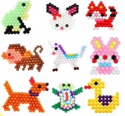 Det er nemt at placere perlerne efter mønsteret og sprøjte med vand. Der opstår smukke og holdbare mønstre, velegnet til børn.