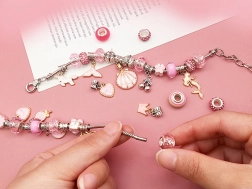 Oplev kreativitetens verden med et sæt af perler og smykker. Dette sæt gør det muligt for børn at skabe unikke smykker efter deres egen fantasi. Sættet er primært i sølv med pink og gyldne accenter.