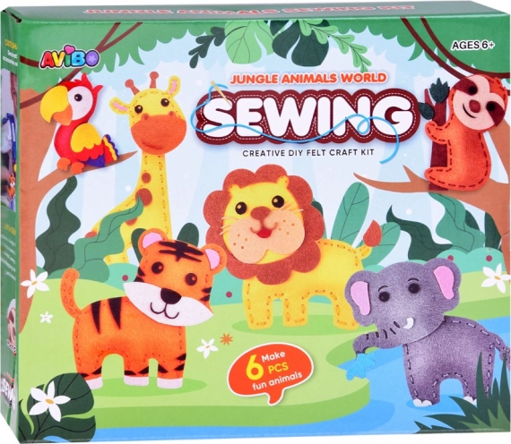 Opdag det kreative sæt Jungle-dyr til syning. Støtter koncentration og manuelle færdigheder og er et alternativ til tv. Sættet indeholder forberedte projekter og tilbehør – ideelt til børns håndarbejde.
