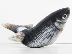 Efter et forsigtigt tryk på maven vågner fisken og begynder at bevæge halen, hvilket troværdigt efterligner en rigtig fisk.