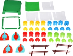 Familie-færdighedsspillet Springende får bringer hurtig action og masser af grin: Brug affyrerne til at skyde farverige får ned i folden. Enkle regler, sjov for både børn og voksne og udvikling af finmotorik, koordination og koncentration. Sættet indeholder 16 får, 4 affyrere og en fold.