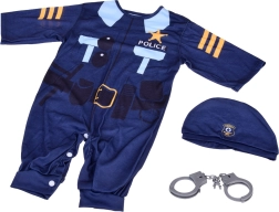 Sødt og realistisk børnepolitkostume til fastelavn, karneval og leg derhjemme. Sættet indeholder en blå heldragt med print og kasket, og der medfølger også håndjern for endnu mere sjov. Takket være nem påklædning og behageligt materiale kan børn nyde masser af kreativ lege-rolle som POLITI og fange tyve.