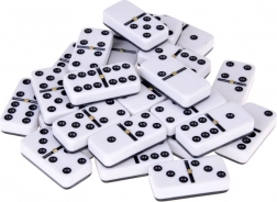 Standardkonfiguration med værdierne 0–6 til alle de populære spilvarianter. Klare sorte prikker på hvide brikker for nem aflæsning.