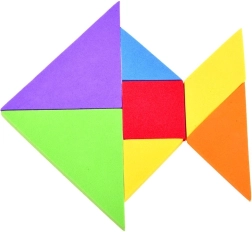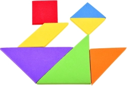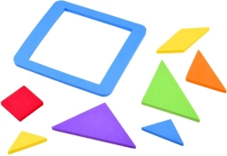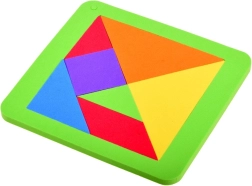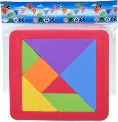 Denne klassiske tangram i en moderne skumudgave byder på timevis af klog underholdning. Af otte dele inklusive rammen kan du samle dusinvis af silhuetter og billeder – efter skabeloner eller din egen fantasi. Det bløde materiale er behageligt at røre ved og sikkert for børn.