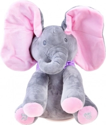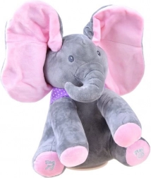 Den søde interaktive plyselefant vil glæde ethvert barn. Den kan afspille to engelske sange, har bevægelige ører og inviterer til peek-a-boo-leg. Blødt materiale, sjove funktioner og nem betjening via berøring på poterne gør den til en fantastisk lege- og krammekammerat.