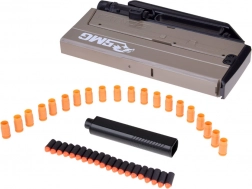 Det aftagelige magasin og de medfølgende patronhylstre med pile muliggør hurtig omladning og uafbrudt sjov.