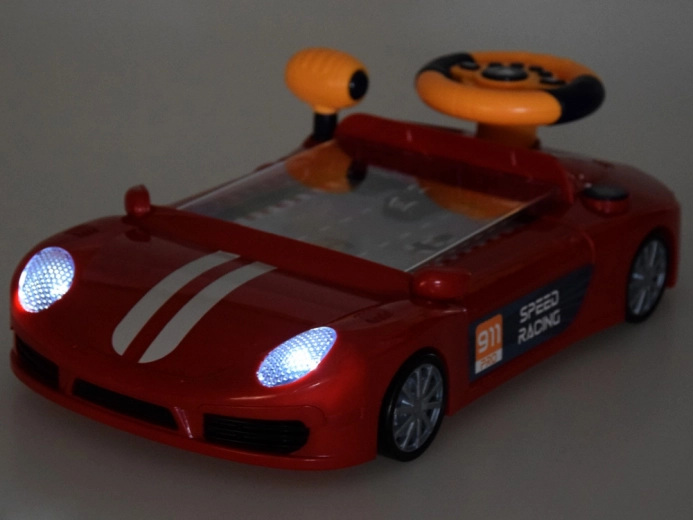 Oplev en ny dimension af børneunderholdning med en racerbil, der gemmer på en farverig racerbane. Børn starter løbet ved at trykke på en knap, aktiverer kørslen med grebet og styrer den lille blå bil inde i spillet ved hjælp af rattet. Under kørslen afspilles glade melodier, de forreste lygter tændes, og der er realistiske lyde af motor, horn og bakning.