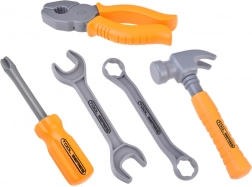 Sættet indeholder hammer, nøgler, skruetrækker, skruer, møtrikker og byggedele – ideelt til træning af finmotorik og kreativ byggeleg.