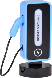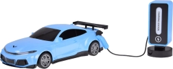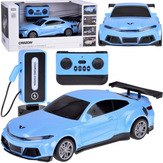 Blå RC-racerbil med realistiske detaljer og ladestation som på rigtige elbiler vil glæde enhver lille fartentusiast. Den tilbyder kørsel frem/tilbage, drejning højre/venstre, automatisk parkering, lyseffekter i 5 tilstande og lyd af horn og musik. I pakken er der genopladelige batterier til både bilen og stationen samt en fjernbetjening med intuitiv betjening.