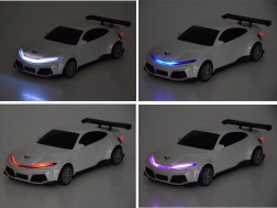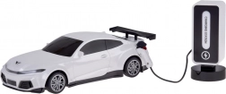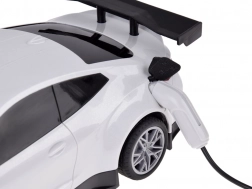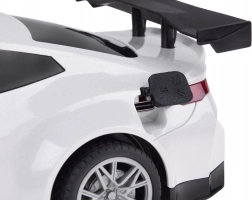 Oplev realistisk kørsel med en sportslig RC-bil med perlemorslak og bagspoiler. Med den intuitive fjernbetjening kan børn nemt styre frem/tilbage og dreje højre/venstre. Stemningen løftes af farvede lys, hornlyd og 4 musiknumre.