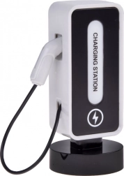 Den praktiske station tilsluttes via USB og lader dig oplade bilen direkte med kablet fra stationen. Med en simpel kontakt vælger du, om stationen eller bilen skal oplades.