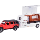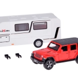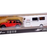 Terrængående bil med campingvogn med lys og lyde 1:32 - rød