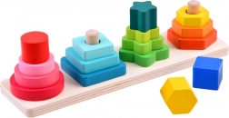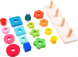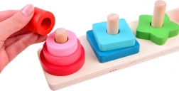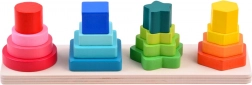 Fire pinde med forskellige former hjælper børn med at genkende og sortere både farver og former, hvilket styrker visuel perception og logik.