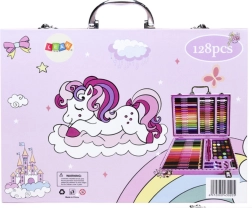 Kunstsæt i kuffert med enhjørning rosa 128 stk