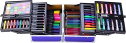 Farveblyanter, kridt og oliepasteller, maling, to pensler, viskelæder, blyantspidser og malebøger til timevis af kreativ underholdning. Det hele er opbevaret i en praktisk udklappelig kuffert, som ikke blot gør opbevaring og transport nemmere, men også opfordrer til at holde styr på kunstmaterialerne efter hver kreativ session.