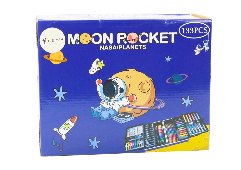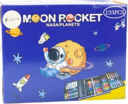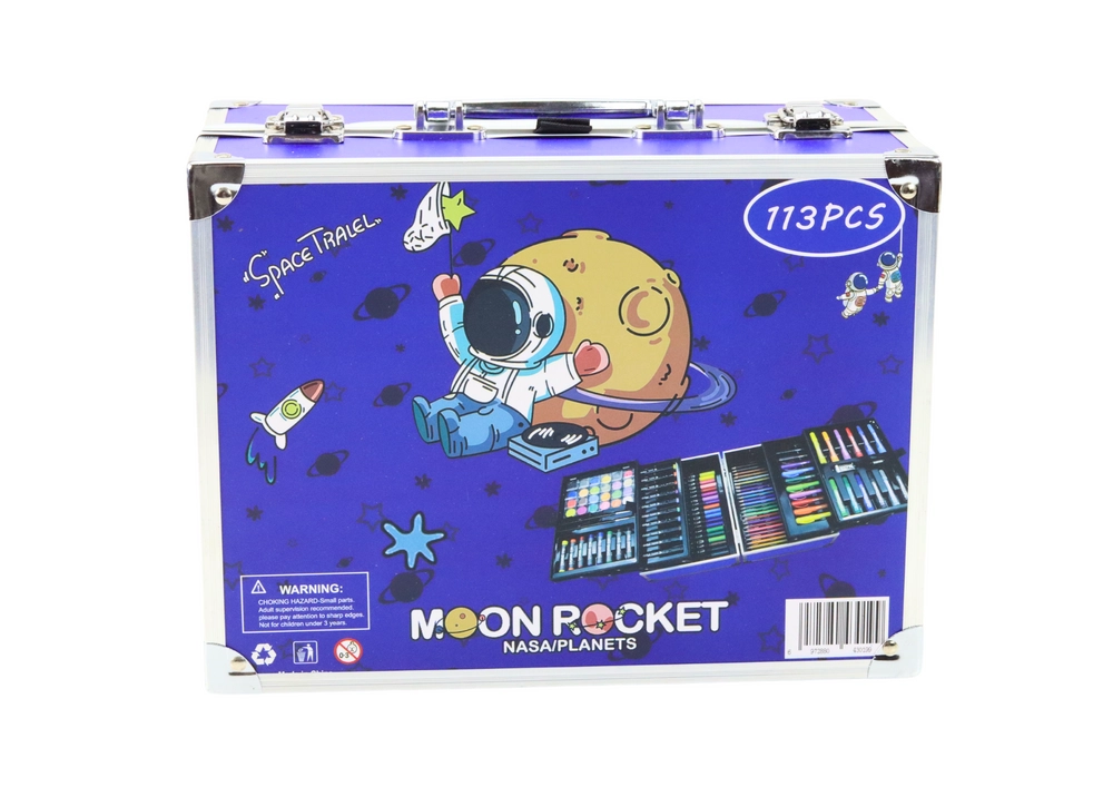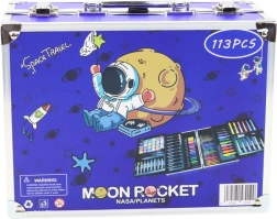 Kunstnersæt i en udklappelig kuffert.Kunstnersæt i en udklappelig kuffert med kosmosmotiv. Det er den ideelle gave til enhver lille kunstner, som vil blive ført ind i en verden af fantasi og kreativitet!