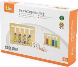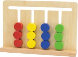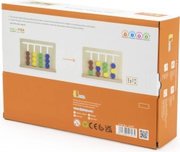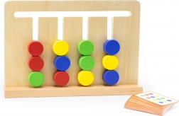 Dette smarte og holdbare redskab udvikler logisk tænkning, finmotorik og koncentration. Børn placerer klodserne på de rigtige positioner og efterligner kortene med de enkelte opgaver – først efter farver, senere efter geometriske former. Spillet fører naturligt til planlægning af bevægelsesrækkefølge og træner tålmodighed.