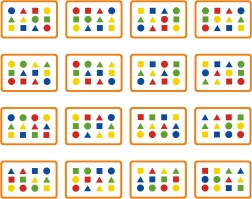 Børn placerer klodserne, så de svarer til skabelonen på kortet. De starter med enklere farvemønstre og går glidende over til geometriske former.