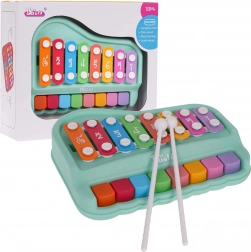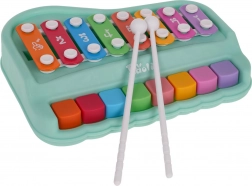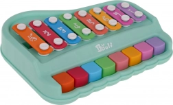 Dette søde musiklegetøj kombinerer et klaver og en xylofon i et kompakt sæt, der udvikler hørelse, rytme og finmotorik. Takket være de livlige farver tiltrækker det naturligt børn og understøtter kreativ leg og de første musikalske forsøg.