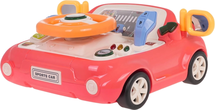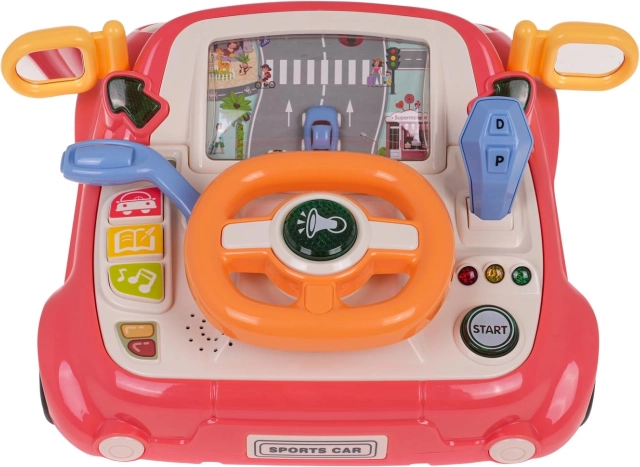 Sjov interaktiv legetøjsbil til børn fra 3 år. Tilbyder lys- og lydeffekter, drejende rat med bagbelyst horn, gearknob, blinklys og en skærm med en bevægelig vej og bil. Solid udførelse i kvalitetsplast, uden skarpe kanter, med fire sugekopper for stabilitet og læring af trafikregler gennem leg.